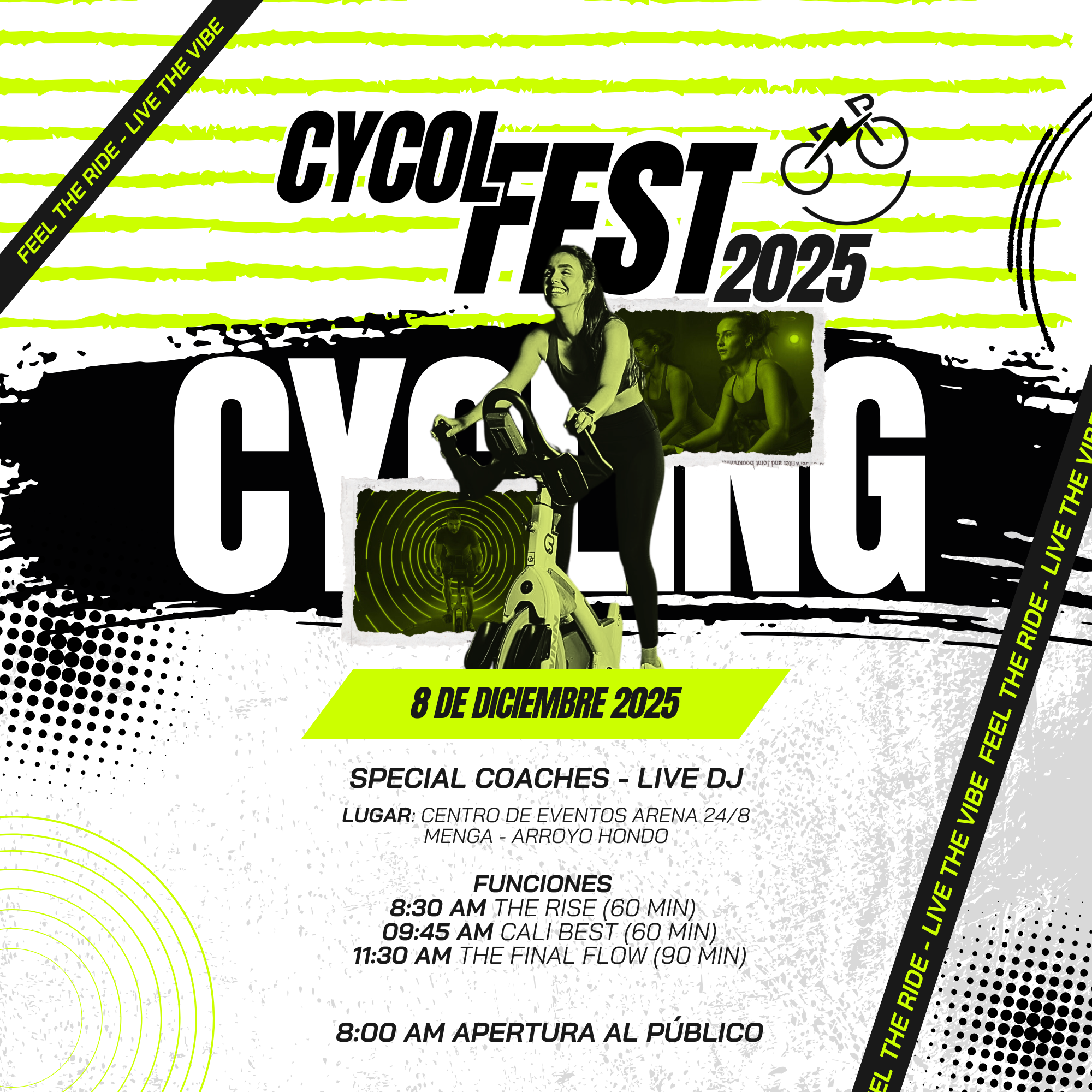 CENTRO DE EVENTOS ARENA 24/8 CL 10 # 36 - 70 MENGA ARROYO HONDO, YUMBO, CALLE DEL CAUCACycol Fest – Vive la energía del pedaleo Prepárate para un día lleno de adrenalina, música y movimiento en el Cycol Fest, este lunes 8 de diciembre. Una experiencia única para los amantes del ciclismo indoor, donde la energía colectiva, la motivación y el ritmo se fusionan para hacerte vibrar sobre la bicicleta. Durante la […]